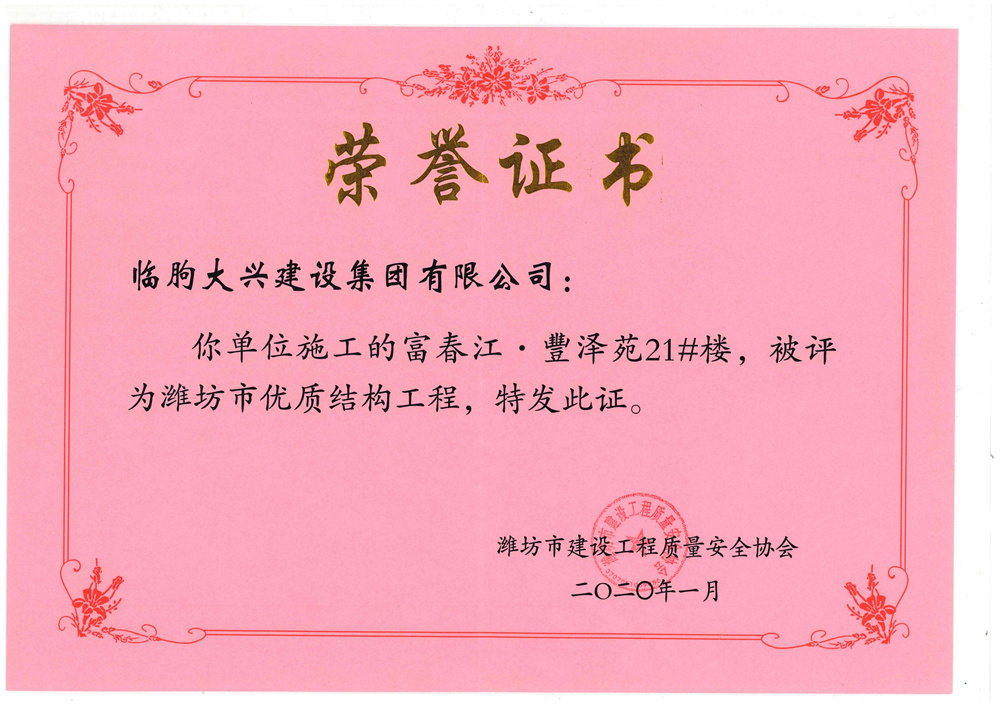 濰坊市優(yōu)質(zhì)結(jié)構(gòu)工程