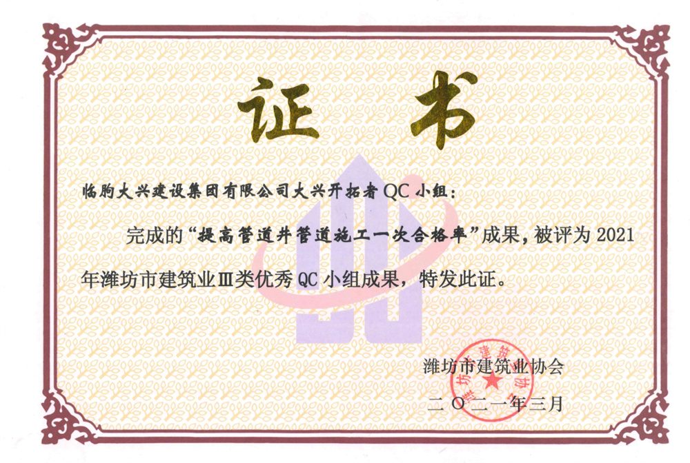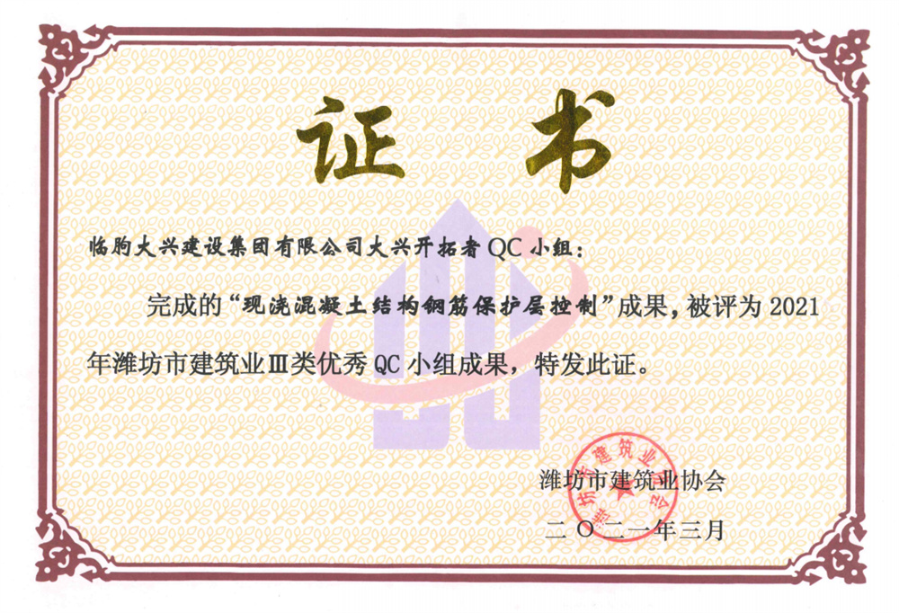 濰坊市建筑業(yè)優(yōu)秀QC小組