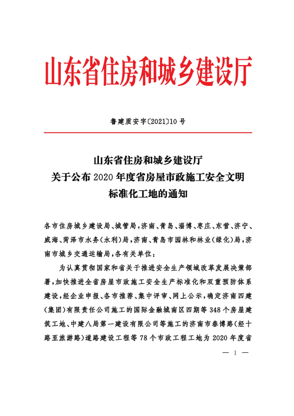 山東省工程質(zhì)量管理標(biāo)準(zhǔn)化示范工程